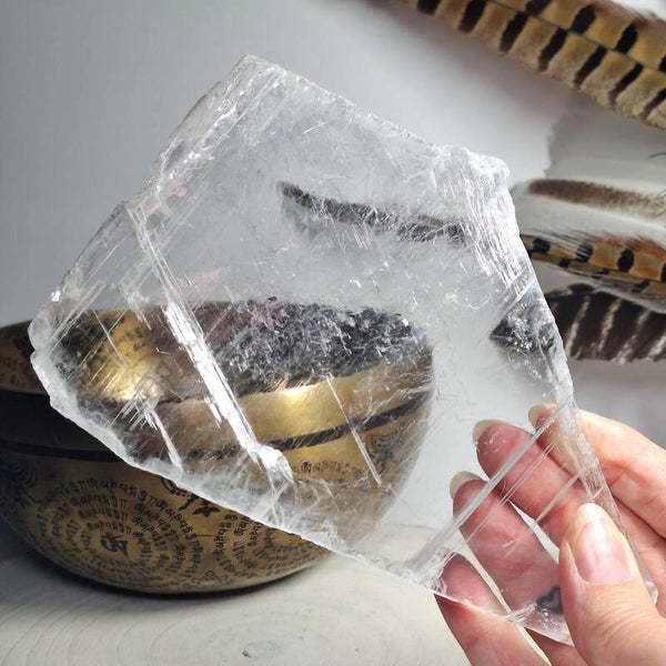Mariaglas. Prachtige grote super heldere seleniet plak / schijf. Ideaal om andere stenen mee te reinigen en op te laden