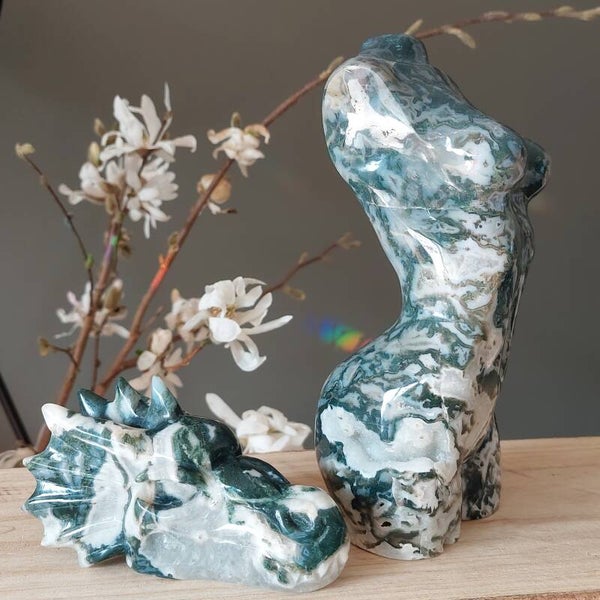 Wauw! wat een prachtig stukje natuur van moeder aarde. Een echte eyecatcher! Zo zie je ze maar zelden... 22cm en 2240 gram. Mosagaat staat o.a voor een nieuw begin. Tevens werd het vroeger gebruikt door vroedvrouwen tijdens bevallingen om de bevalling voorspoedig te laten verlopen en een gezond kindje op de wereld te brengen.