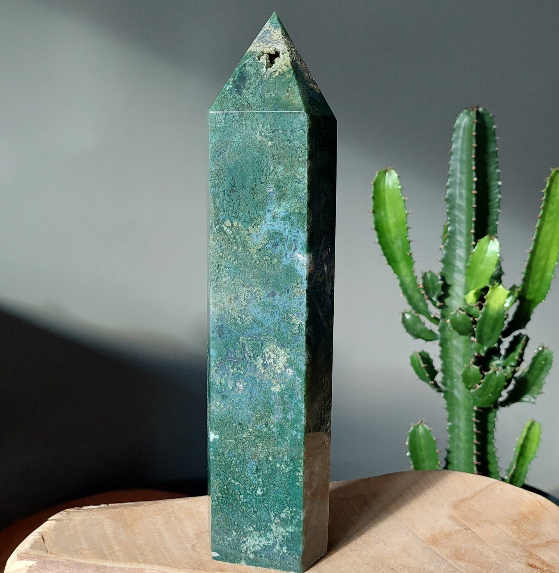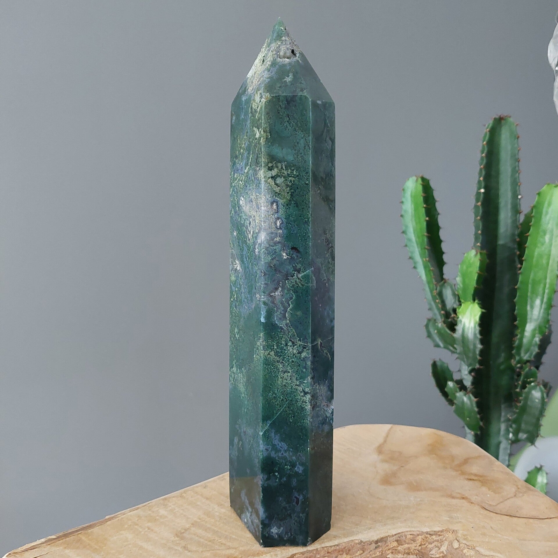 Mos agaat helpt je om zorgen los te laten en te ontspannen. Goed voor huid, haren en bevordert spijsvertering. Maakt actief en vitaal. Mos agaat geeft rust en helderheid, maakt bevalling makkelijker, positieve invloed op de ontwikkeling van de foetus, stimuleert wilskracht en werklust, zorgt voor meer uithoudingsvermogen, opent het hart voor universele liefde, geeft energie en helpt om beter te aarde. Mos agaat heeft een positieve werking op de weerstand, het immuunsysteem, hart en bloedvaten en de longen. De energieën zijn bescheiden maar heilzaam. Hij werkt stabiliserend en aardend. De energie van deze steen zorgt ervoor dat lichaam, geest en ziel naar hun natuurlijke evenwicht worden gebracht zodat je meer rust kunt ervaren op alle niveaus. Mos agaat helpt je te herstellen na ziekte en om weer tot jezelf te komen na een periode van emotionele onrust. Mos agaat werkt goed tegen angsten en stress. Helpt tegen straling