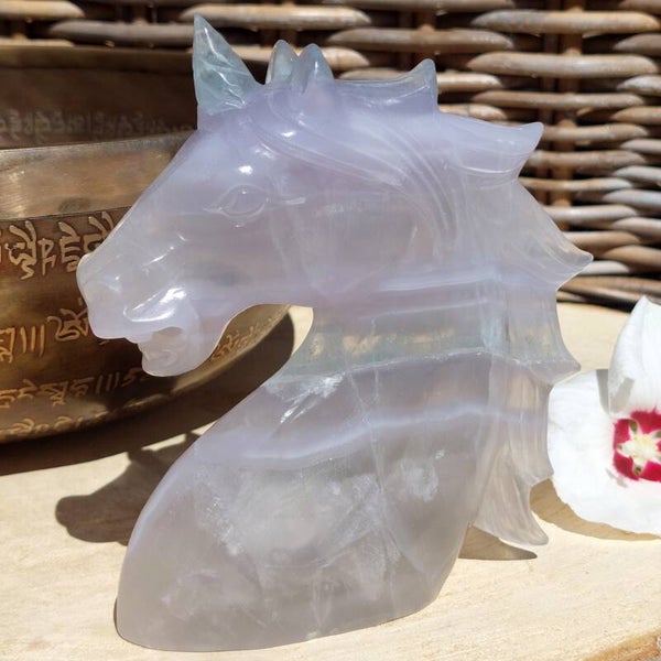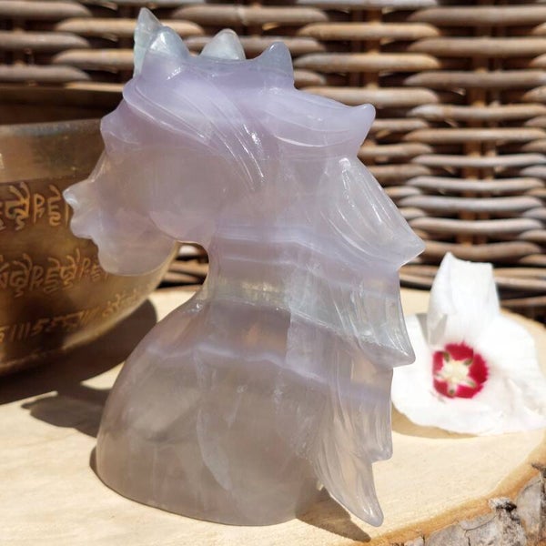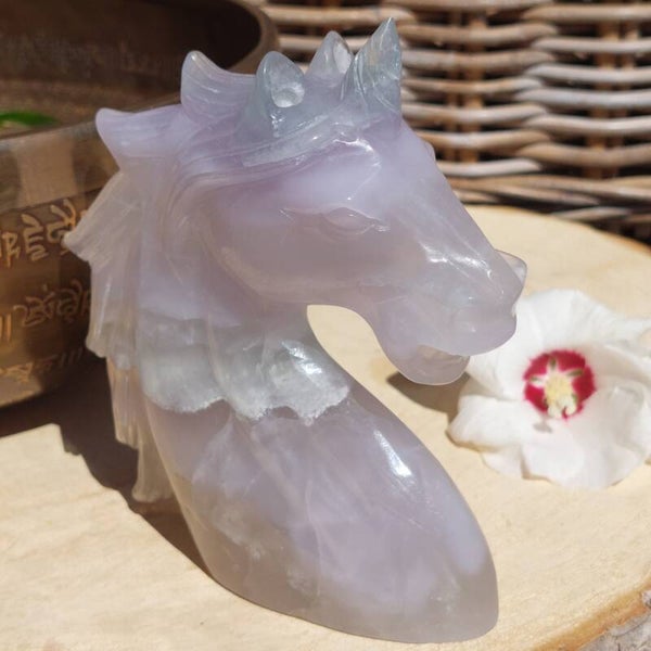 Fluoriet. Prachtige grote Eenhoorn / Unicorn van lavendel Fluoriet 765 gram en 15 cm