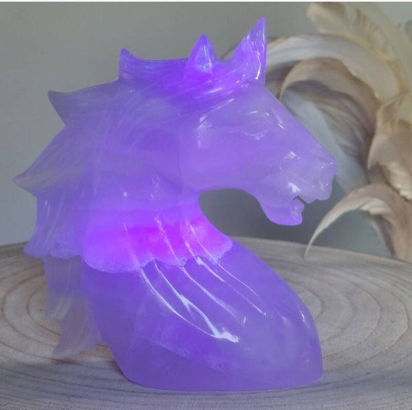 Deze prachtige lavendel Fluoriet unicorn is een mooi groot exemplaar van 15cm. Deze Fluoriet reageert op UV licht wat toch wel een "magisch" mooie effect geeft.
