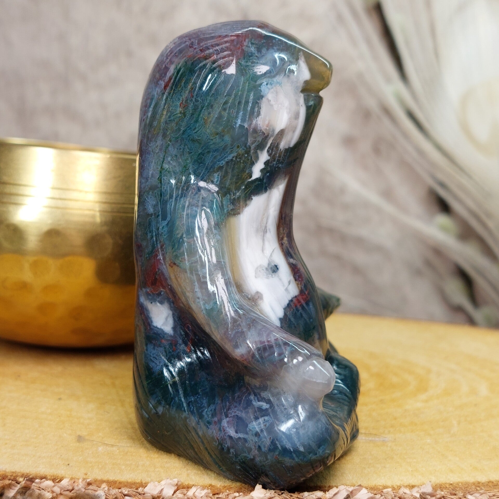 Mos agaat helpt je om zorgen los te laten en te ontspannen. Goed voor huid, haren en bevordert spijsvertering. Maakt actief en vitaal. Mos agaat geeft rust en helderheid, maakt bevalling makkelijker, positieve invloed op de ontwikkeling van de foetus, stimuleert wilskracht en werklust, zorgt voor meer uithoudingsvermogen, opent het hart voor universele liefde, geeft energie en helpt om beter te aarde. Mos agaat heeft een positieve werking op de weerstand, het immuunsysteem, hart en bloedvaten en de longen. De energieën zijn bescheiden maar heilzaam. Hij werkt stabiliserend en aardend. De energie van deze steen zorgt ervoor dat lichaam, geest en ziel naar hun natuurlijke evenwicht worden gebracht zodat je meer rust kunt ervaren op alle niveaus. Mos agaat helpt je te herstellen na ziekte en om weer tot jezelf te komen na een periode van emotionele onrust. Mos agaat werkt goed tegen angsten en stress. Helpt tegen straling