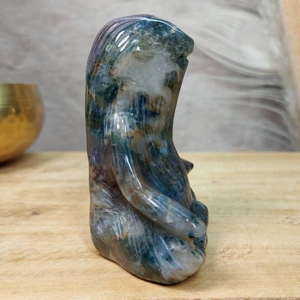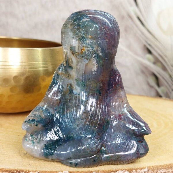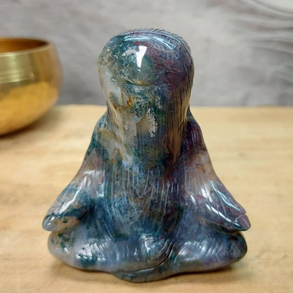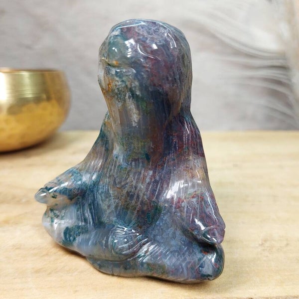 Mosagaat. Mediterende luiaard Uniek exemplaar met diverse kleuren Mosagaat. c.a 8,3 x 6,5cm