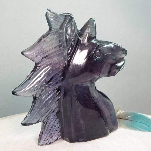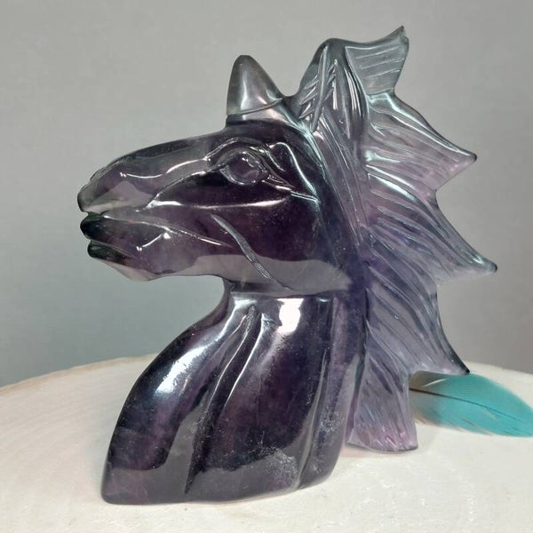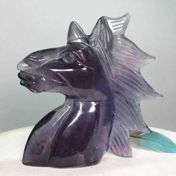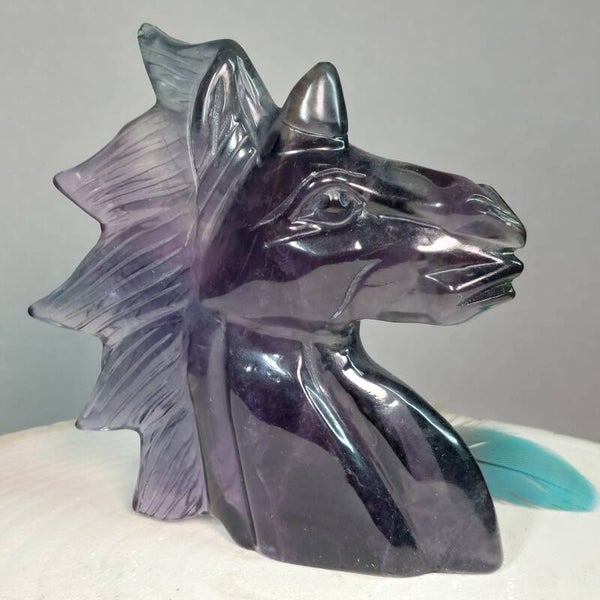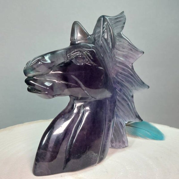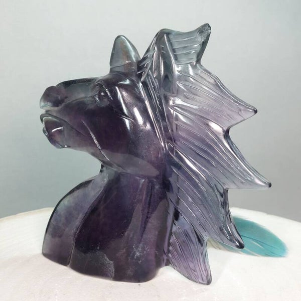 Fluoriet. Prachtige Unicorn / Eenhoorn van Blauw paarse Fluoriet 14 cm prachtig exemplaar.