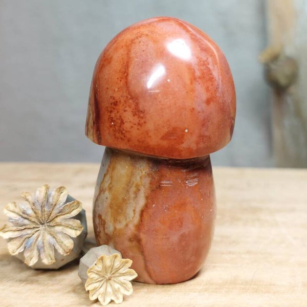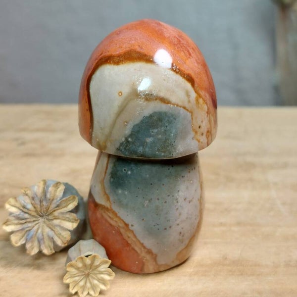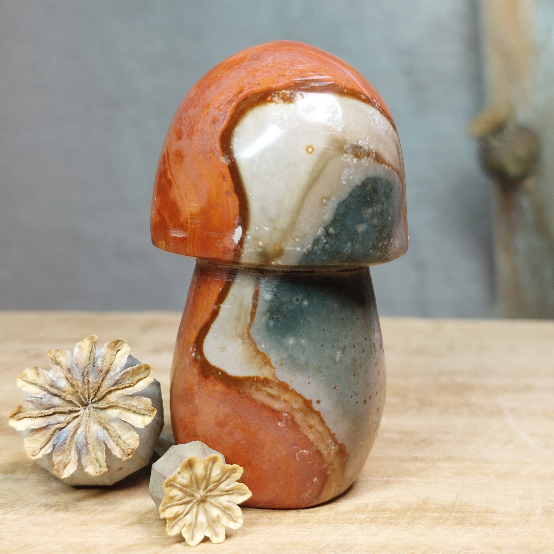 Mooie grote Polychroom Jaspis  paddestoel van 6,4 cm