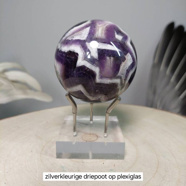 Zilveren 3 poot op plexiglas: S= 5cm, M=6cm L=8cm XL=10cm