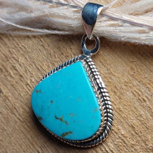 Turquoise / Turkoois hanger 3,5cm. Prachtige 925 zilveren hanger met zeer hoge kwaliteit Turquoise.